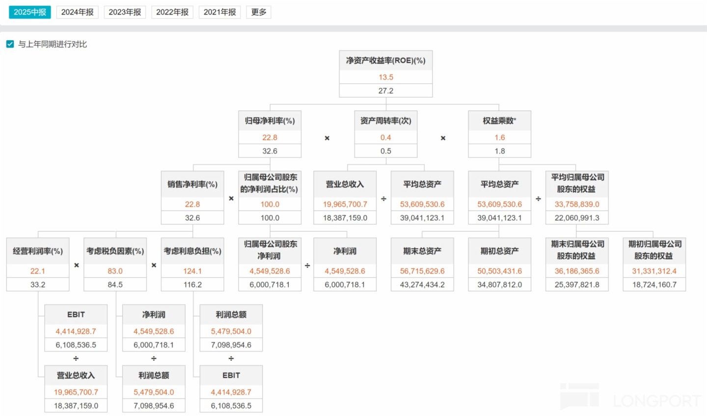 而拼多多淨資産回報率,即使今年上半年因為銷售淨利潤率下滑、沒有投入主營業務的現金累計太多拖累了資産周轉率和權益乘數,今年上半年仍然有 13.5%(低於去年同期的 27%),遠遠高於公司 4-5% 的整體閑錢收益率。