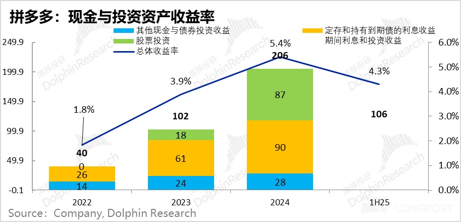 這個季度,拼多多利息和投資收益單季直接拉到了百億水準(以利息和股票投資收益為主),相比當季 258 億的主營業務經營利潤已經是一個不小的存在了。
