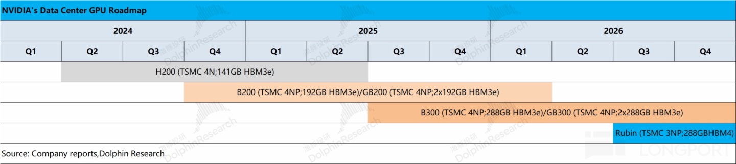 b)Rubin 産品進展:公司在 3 月就公佈了後續的産品路綫圖,隨著 GB300 進入量産,市場將一部分的注意力移到 Rubin 産品上。公司此前披露 Vera Rubin NVL144 將在 2026 年下半年上市,其性能將是 GB300 NVL 72 的 3.3 倍,這也展現出英偉達的産品叠代能力。