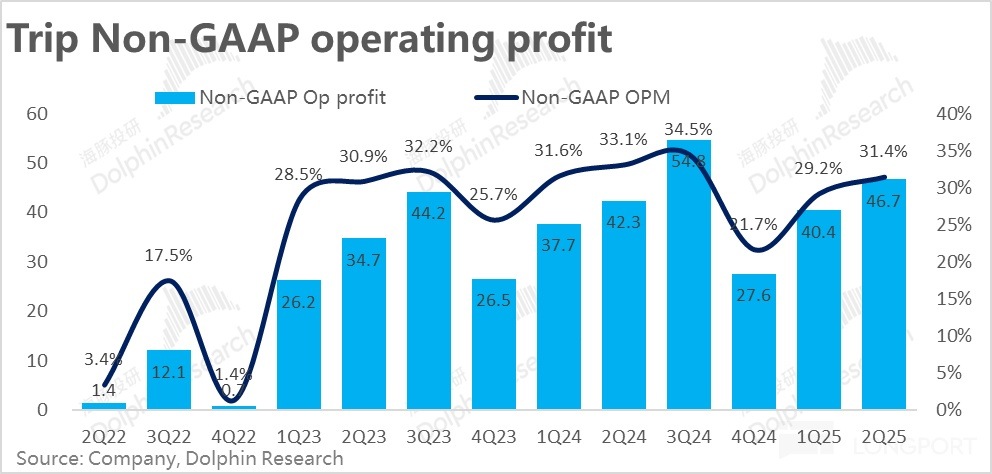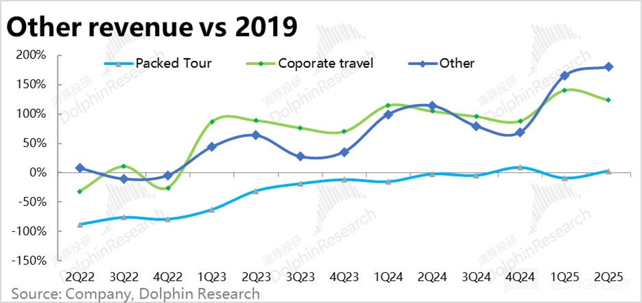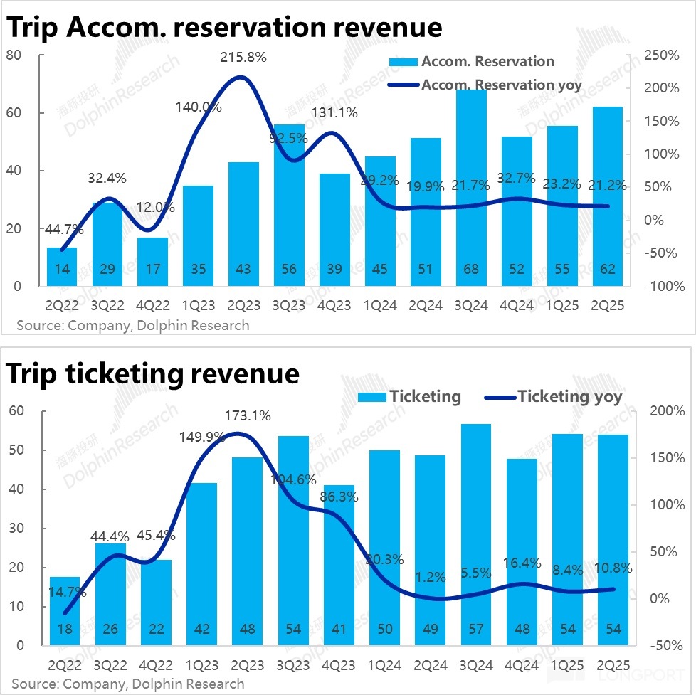純海外業務的預訂量同比增長 60%,和上季度一致。在去年同期也是同比 60% 增長的高基數下,增長依舊相當不俗。