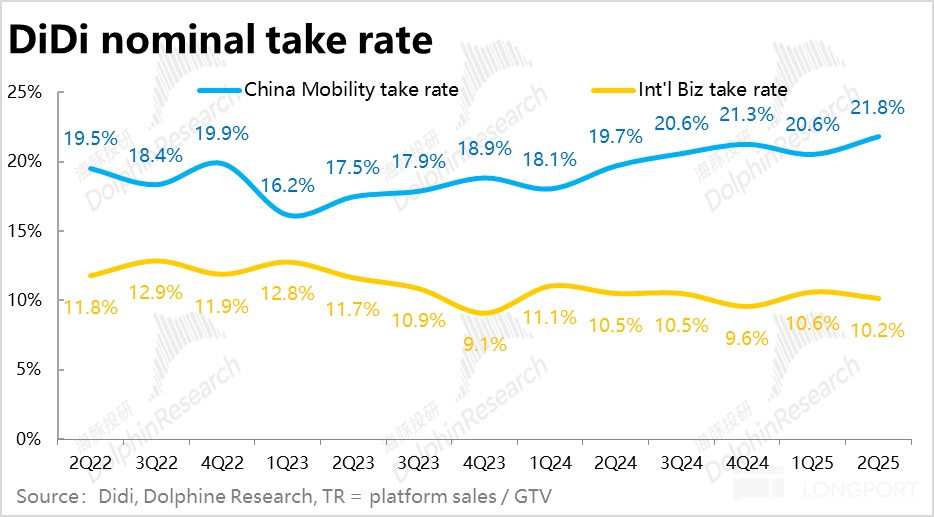 2、國内變現率走高:以國内業務 GTV 的 12% 增速為基準,國内業務營收(GTV 剔除乘客補貼、稅費等收入減項)同比增長 10%,跑輸;而平台收入(GTV 扣除司機分成及其他運營側成本)同比增長約 24%,跑贏。