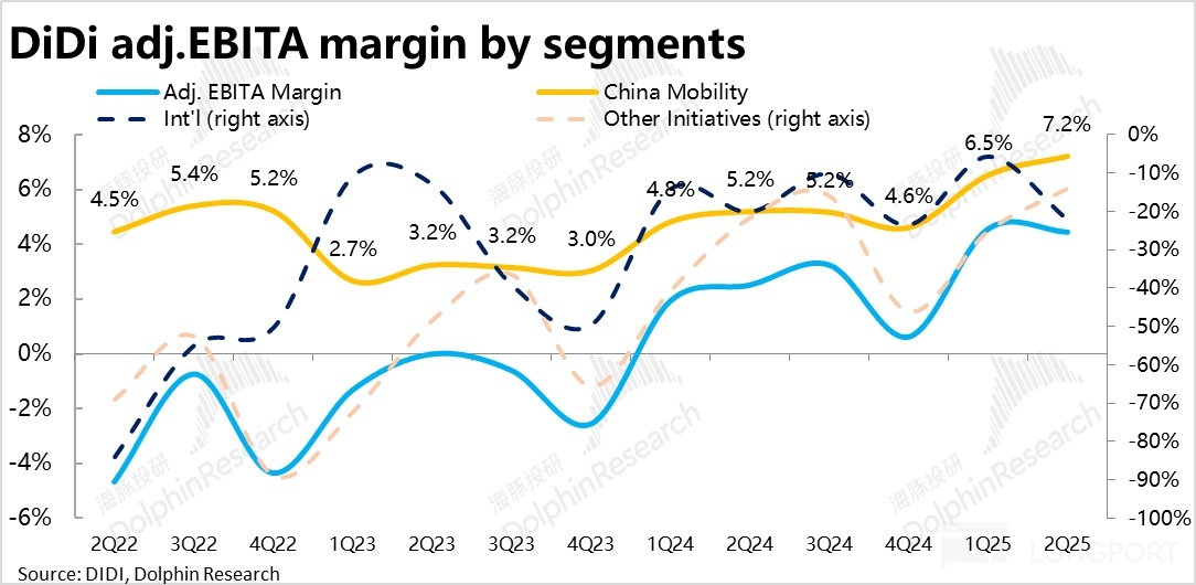 和上季度類似,一方面公司的經營效率可能在進一步提升,降低了需分配給其他方的成本。此外,在不算景氣的經濟大環境下,滴滴仍在一個提變現、提效率、釋放利潤的時間窗口内。
