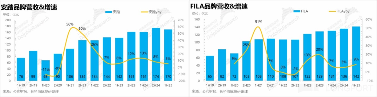 FILA作為安踏的第二增長曲綫, 上半年實現營收 141.8 億元,同比增長 8.6%,小幅超出市場預期。最大的亮點在於公司圍繞中産消費者,發力高爾夫和網球兩大菁英運動賽道,推出的專業運動産品綫表現優異。