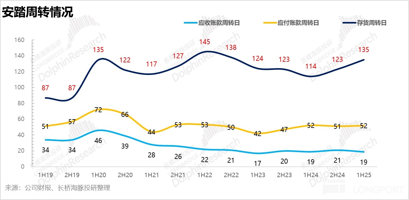 最後,從周轉天數上看,25H1 公司存貨周轉天數為 135 天,相較於同期明顯提升,說明除了上述分析的功能性品類表現較優外,其他一般品類還是面臨比較大的需求壓力,另外,二季度面臨的門店調整也延緩了存貨的出貨速度。