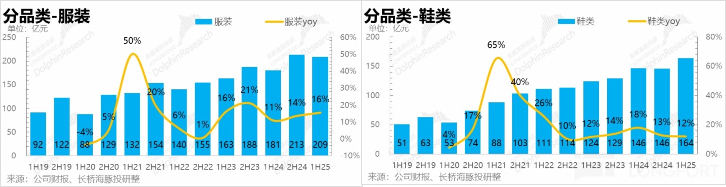 服裝實現營收 208.9 億元,同比增長 15.5%,增長相對平穩,其中戶外的功能性服飾表現較優,品類上處於加速滲透的狀態,其他休閑服飾表現相對溫和。