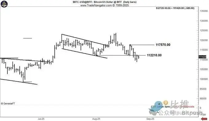 資深交易員Peter Brandt認為,盡管比特幣近期出現反彈,但要徹底擺脫中期的看跌情緒,價格必須突破 117,570 美元的關鍵阻力位。