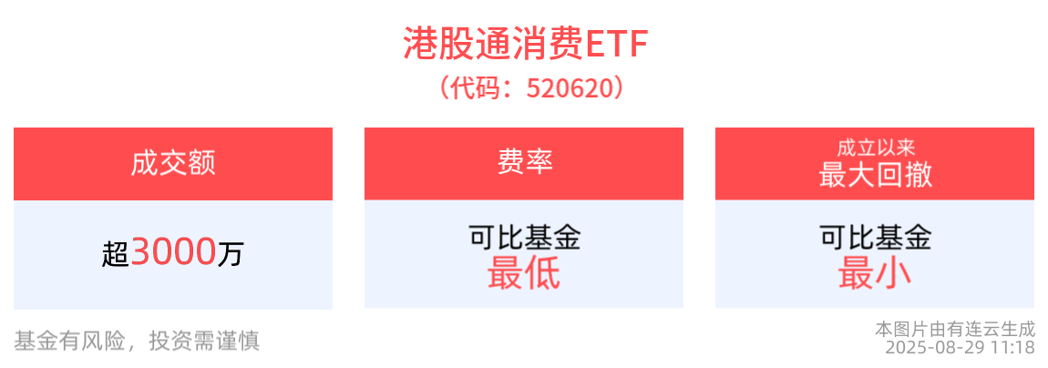 流動性方面,港股通消費ETF盤中換手18.68%,成交3364.08萬元,市場交投活躍。拉長時間看,截至8月28日,港股通消費ETF近1年日均成交5176.51萬元。