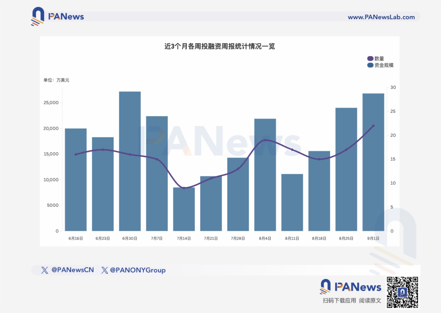 據 PANews 不完全統計,上周(8.25-8.31)全球區塊鏈有22起投融資事件,資金總規模超2.683億美元,概覽如下:
