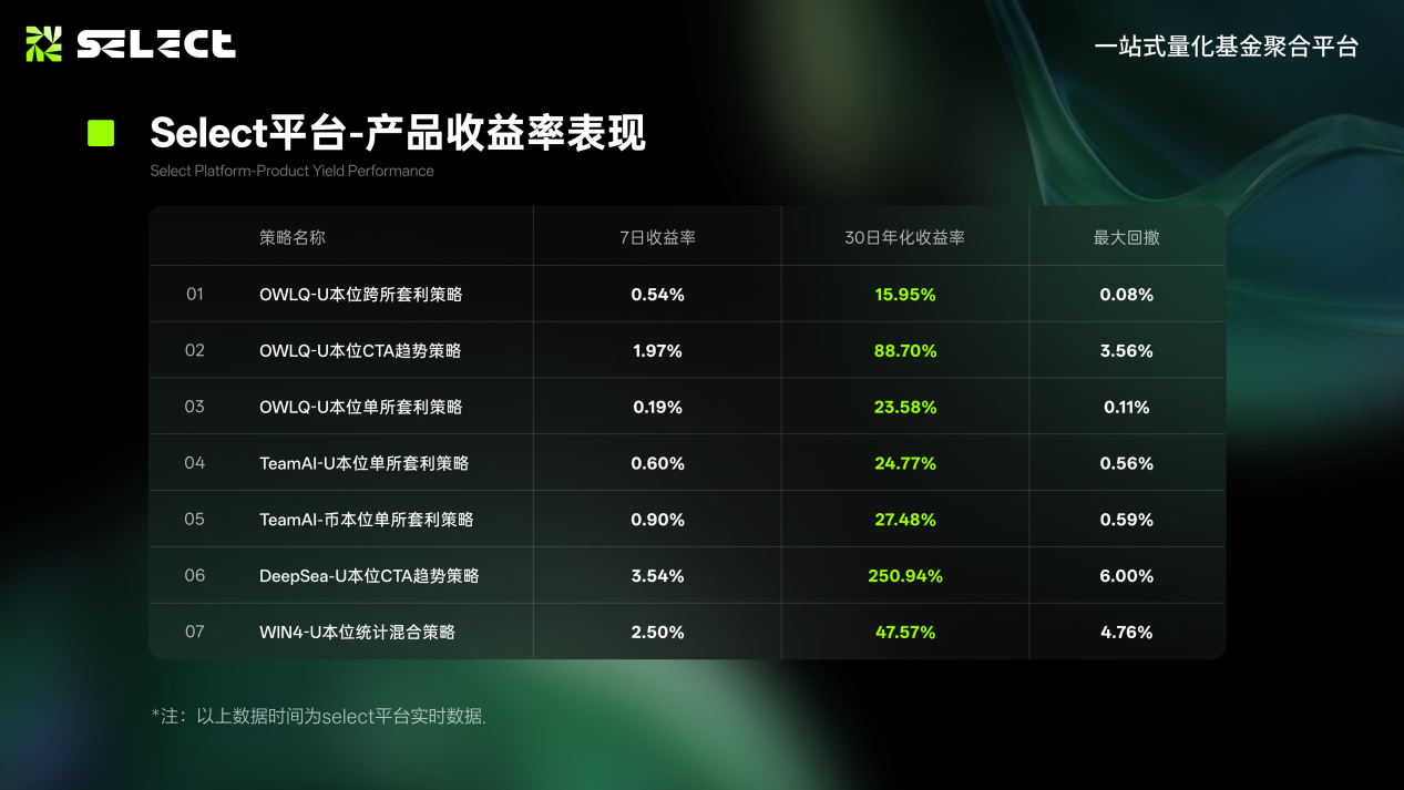 Select 相信,真正的收益來自執行,而非炒作。在復雜多變的市場環境中,Select 專注於以專業的量化模型、嚴格的風控體係和透明的數據展示,為投資者打造一個值得長期信賴的平台。