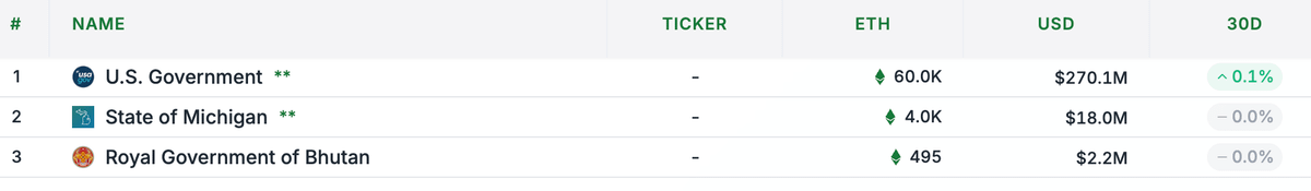 - 美國密歇根州政府:約 4000枚 ETH,價值 800萬美元