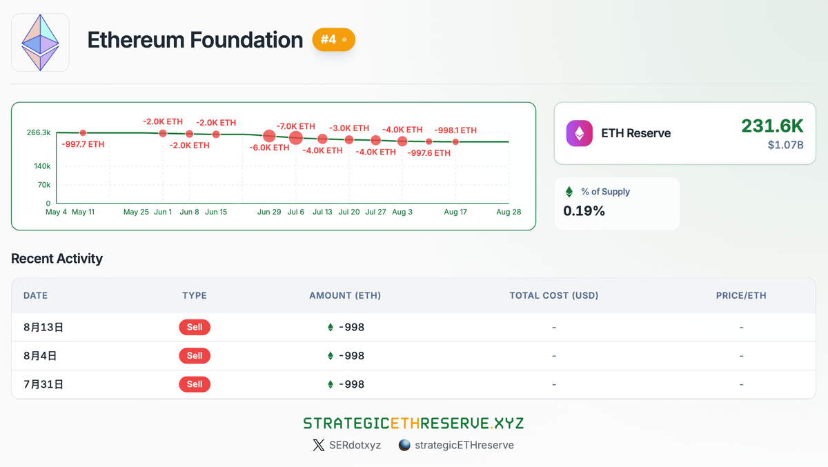 雖然規模不算龐大,但這部分資金是長期戰略性儲備。基金會一般會定期抛售少量ETH,用來支持研發、社區撥款與運營,基本屬於“健康的賣壓”。