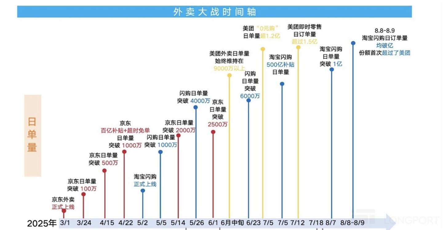 2)不僅是驅動了用戶的增長,在經歷了 5、6 月的初步試探,和三季度的攻堅戰後,淘寶閃購在短短的 4~5 個月内就做到了和原本穩坐龍頭的美團大體相當的單量規模和市場份額。