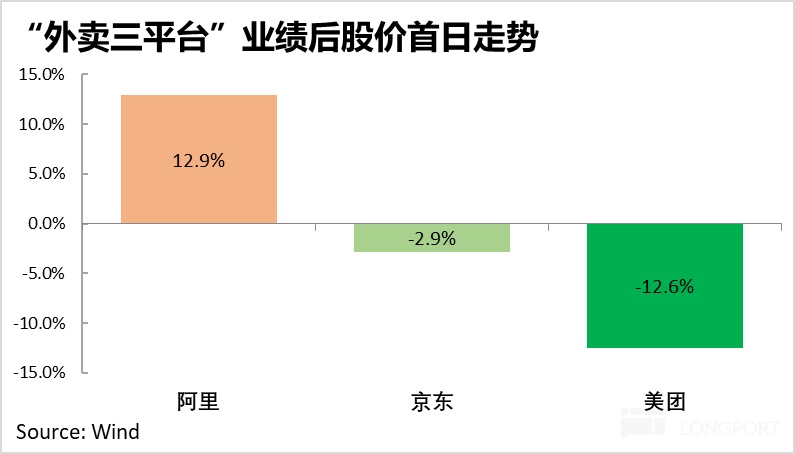 上周五,隨著今年外賣大戰中最後也是重磅玩家阿裡巴巴也公佈了業績,終於可以一窺此輪 「外賣大戰」 在二季度内的階段性競爭結果。資本市場最關注的股價(當然短期内股價只是投票機)上,阿裡、美團、京東三家公司公佈業績後的首日走勢,進攻方的阿裡表現最強、單日股價拉漲近 13%(港股更是暴漲 18%),防守方的美團則對應大跌近 13%。而最先挑起此輪大戰的京東,雖其二季度同樣利潤清零,業績小幅下跌不到 3%。
