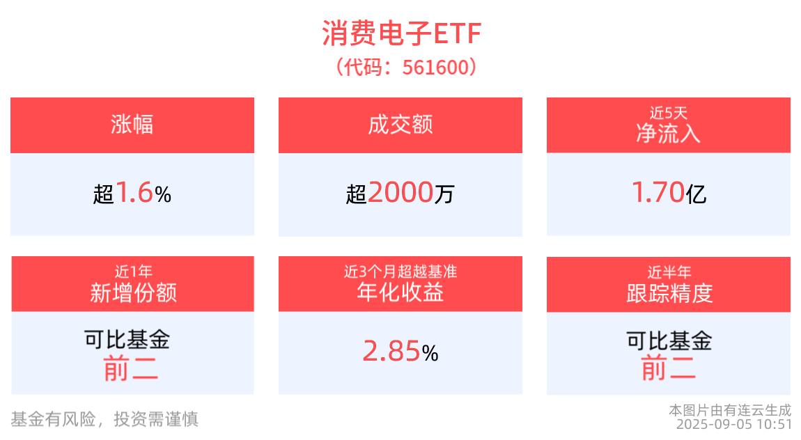漲超1.6%,消費電子ETF(561600)近5個交易日淨流入1.70億元