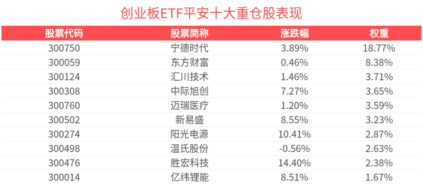 創業板ETF平安緊密跟蹤創業板指數,創業板指由創業板中市值大、流動性好的100只股票組成,反映創業板市場的運行情況。