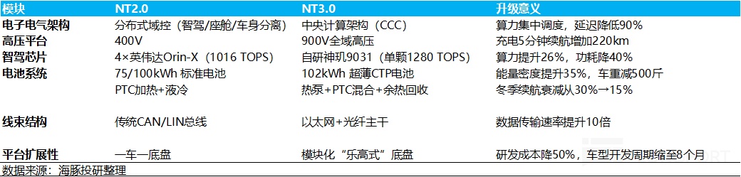 而此次升級的 NT3.0 平台,不僅在續航 + 快充純電的核心痛點上進行了升級,同時在舒適性配置上也標配 「冰箱彩電大沙發」,大幅改進 NT2.0 平台車型的定義失誤問題。