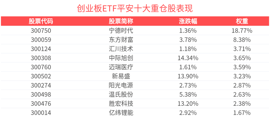 創業板ETF平安(159964),場外聯接(平安創業板ETF聯接A:009012;平安創業板ETF聯接C:009013;平安創業板ETF聯接E:024492)。