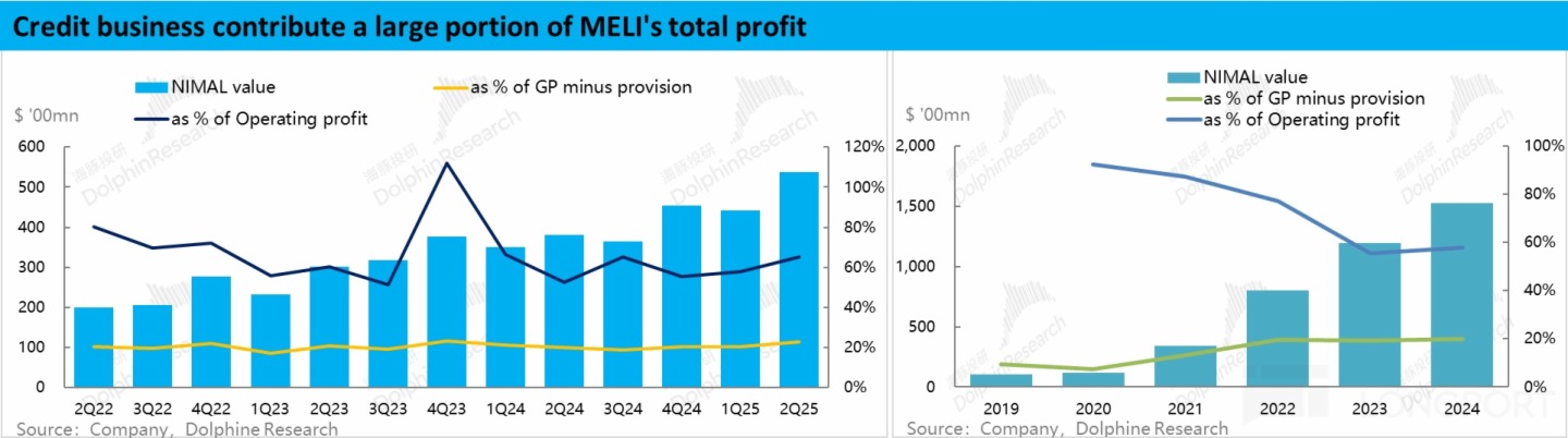 但好在拉美地區極高的利率水平,給了Meli能承擔如此高壞賬比例的空間,甚至還能給自身留下20%的淨息差。從這角度看,若後續公司能夠提高信用分析能力,壓降壞賬比率,公司目前已很高的淨息差就還能有不小的提升空間。