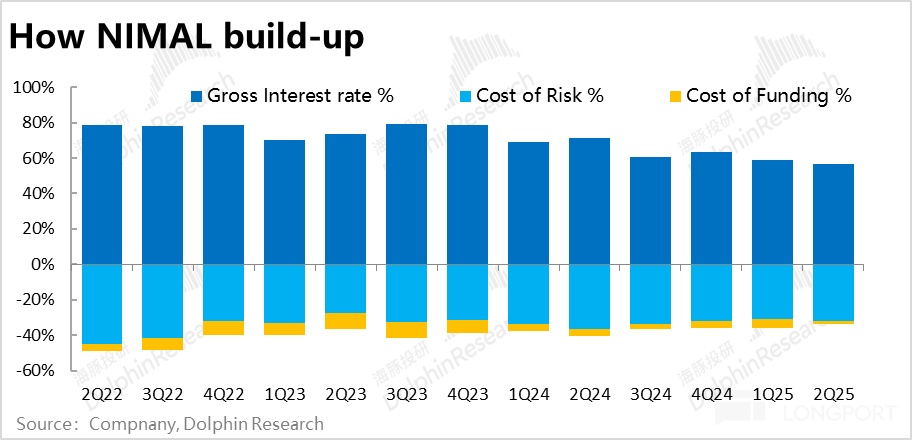 那麼上述壞賬風險到底有多高,在公司信貸業務的UE模型内有多大的影響?我們根據公司披露的NIMAL、利息收入和壞賬支出計提,構建了公司信貸業務的NIMAL構成。