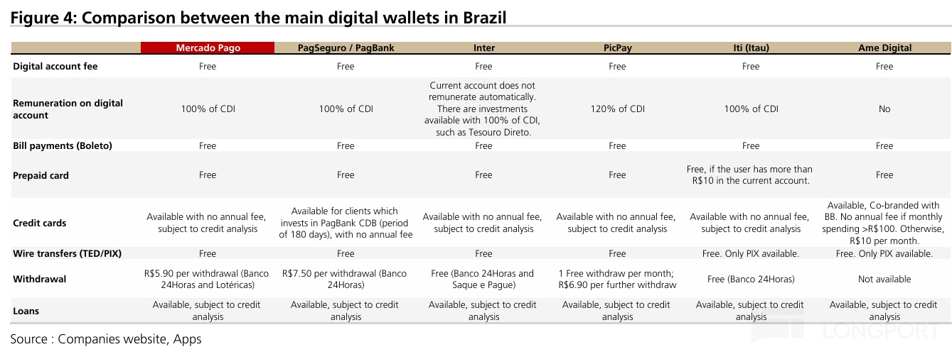 大邏輯上,Fintech公司能夠快速搶佔份額的主要原因,是老生常談的傳統金融機構對小微商戶的覆蓋和服務意願較低,並且傳統機構較高的POS機等硬件價格也限制了小微商戶們採用這些服務。而Pago和PagS等新興支付結構的入門款POS機價格僅BRL40,遠低於傳統POS機至少BRL 200以上的價格,大幅降低商戶使用POS服務的入門成本。對此我們不詳細討論。