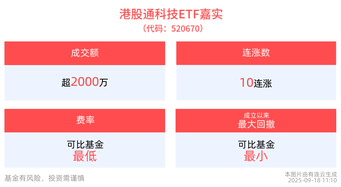 流動性方面,港股通科技ETF嘉實盤中換手9.06%,成交2470.26萬元。拉長時間看,截至9月17日,港股通科技ETF嘉實近1年日均成交6006.67萬元。