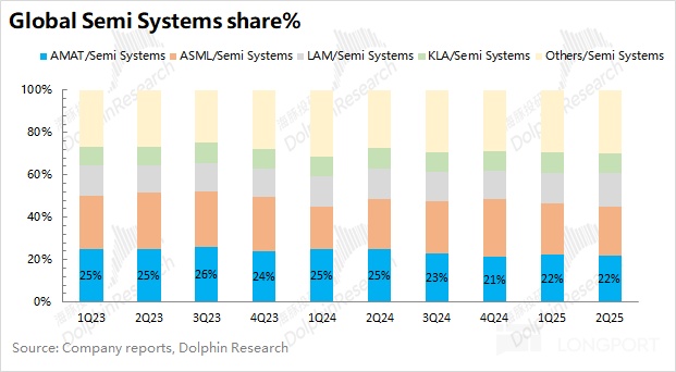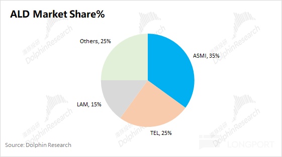 由於 ALD 設備需與制程工藝深度綁定,阿斯麥國際 ASMI、TEL 通過與台積電、三星的聯合研發早早鎖定先進制程訂單,而應用材料 AMAT 的 ALD 設備更多作為其 「沉積 + 刻蝕」 綜合解決方案的補充,未能建立獨立的客戶粘性,導致在先進制程招標中屢屢錯失份額。