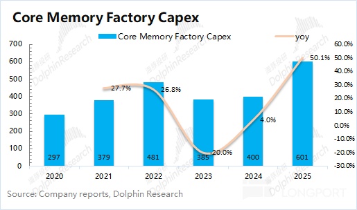 在 AI 存儲需求的帶動下,三大存儲廠商的合計資本開支在 2025 年有望實現 50% 的提升,達到 600 億美元左右。