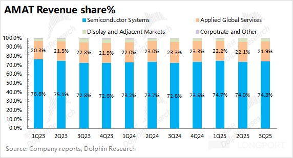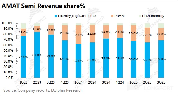 c)邏輯與存儲雙輪驅動:面對半導體周期性波動,應用材料以邏輯市場(佔 7 成收入)為基本盤,對沖存儲市場(佔 2-3 成)的強周期風險。2025 年邏輯端借台積電 AI 芯片需求穩增長,存儲端受 HBM 相關開支反彈的帶動,雙市場互補佈局,使其在行業波動中保持相對穩健。