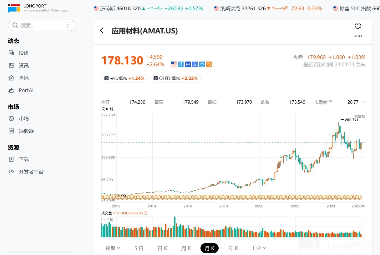 應用材料(AMAT.O)是美國半導體行業中的老牌公司,成立於 1967 年,至今依然是全球半導體設備行業中的龍頭之一。如果把時間綫拉長來看,應用材料 AMAT 無疑是一個長牛的公司,也一直是半導體産業鏈中的重要一環。