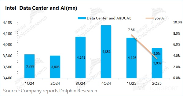 數據中心 GPU:英特爾完全錯失 AI 浪潮下 GPU 的市場機會,在數據中心市場完全沒有存在感;
