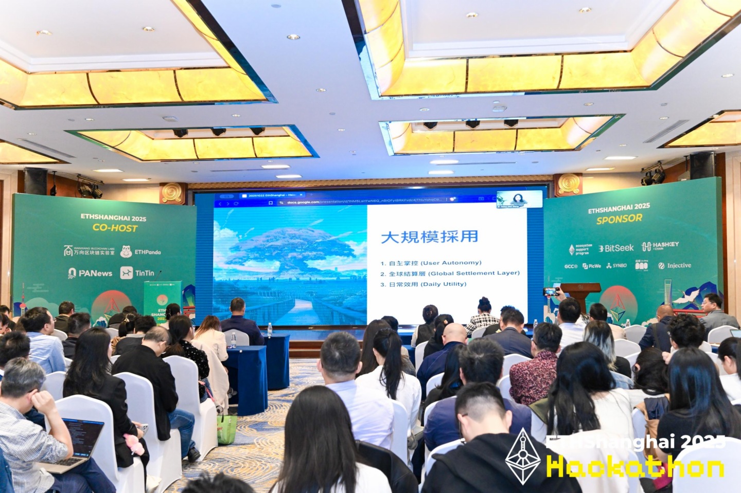 10月22日,ETHShanghai 2025主峰會在上海圓滿落幕。本屆大會以“拓展以太坊,塑造開放未來”為主題,由華語建設者社區ETHPanda聯合萬向區塊鏈實驗室、PANews與TinTinLand共同主辦。大會吸引了來自全球的40餘位行業領袖,圍繞以太坊擴容、模塊化生態、開發者增長及長期安全等核心話題進行了精彩分享與深度討論,並在大會上正式公佈了ETHShanghai 2025黑客松的獲獎者。