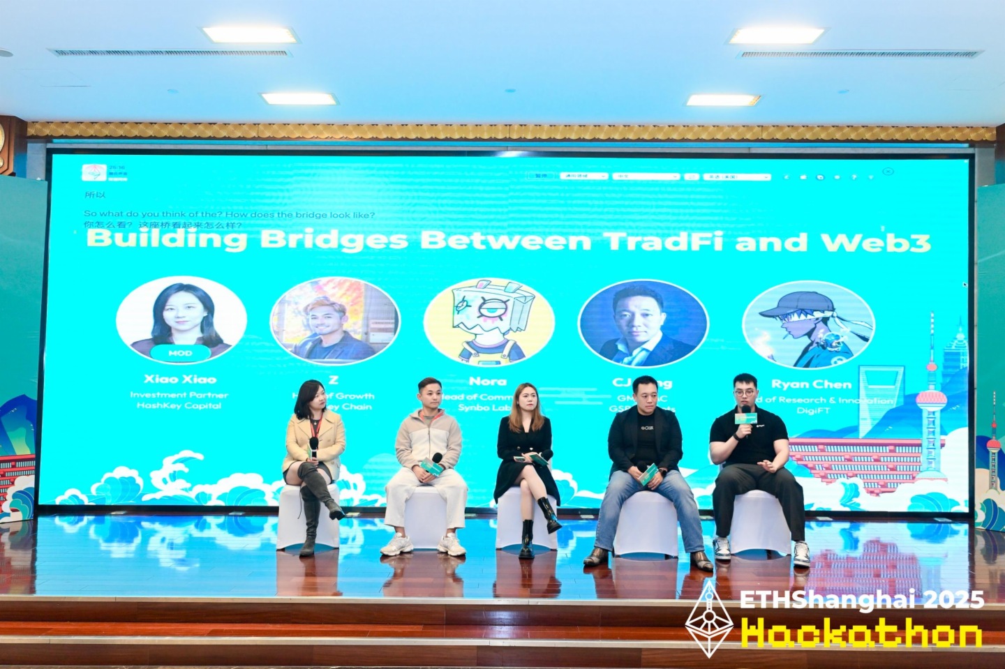 在“從TradFi到Web3:搭建信任與價值的橋梁”圓桌討論中,匯聚了HashKey Capital投資合夥人Xiao Xiao、HashKey Capital業務增長人Z、Synbo Labs社區負責人Nora、GSR Markets亞太區總經理CJ Fong和DigiFT研究與創新負責人Ryan Chen。