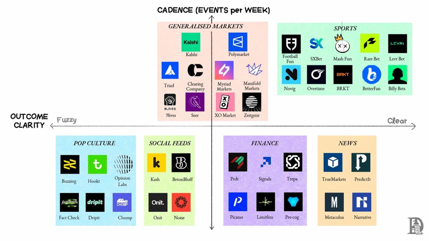 這正是轉型最耐人尋味之處。我們常將加密世界等同於投機,但這無異於認定互聯網全然關乎色情——據某些估算,早期確是如此。1990 年代,互聯網帶寬與收入大多來自成人内容。但市場力量與資本激勵最終構建出注意力經濟,催生了 Meta、Alphabet 等眾多互聯網巨頭。 加密世界始終難以觸達普通網民。沒人會清晨醒來思索二層網絡的 TPS,或驗證節點如何隨 AWS 宕機而癱瘓。人們真正關心的是體育、音樂與政治。嵌入式預測市場正為普通人模糊社交關注與鏈上交易的界限,這也正是預測市場作為賽道對行業至關重要的原因。