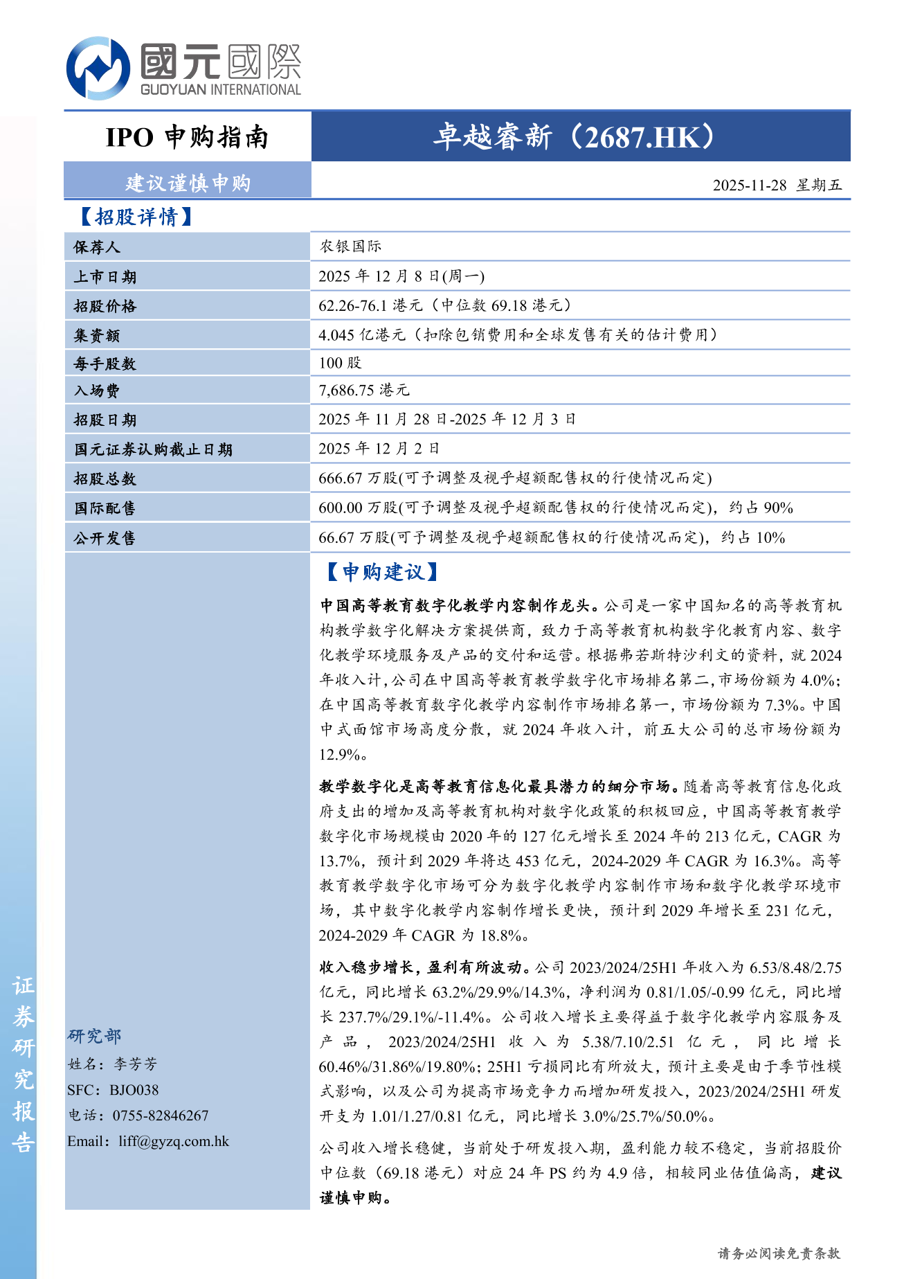 卓越睿新(2408.HK)IPO申購指南:建議謹慎申購