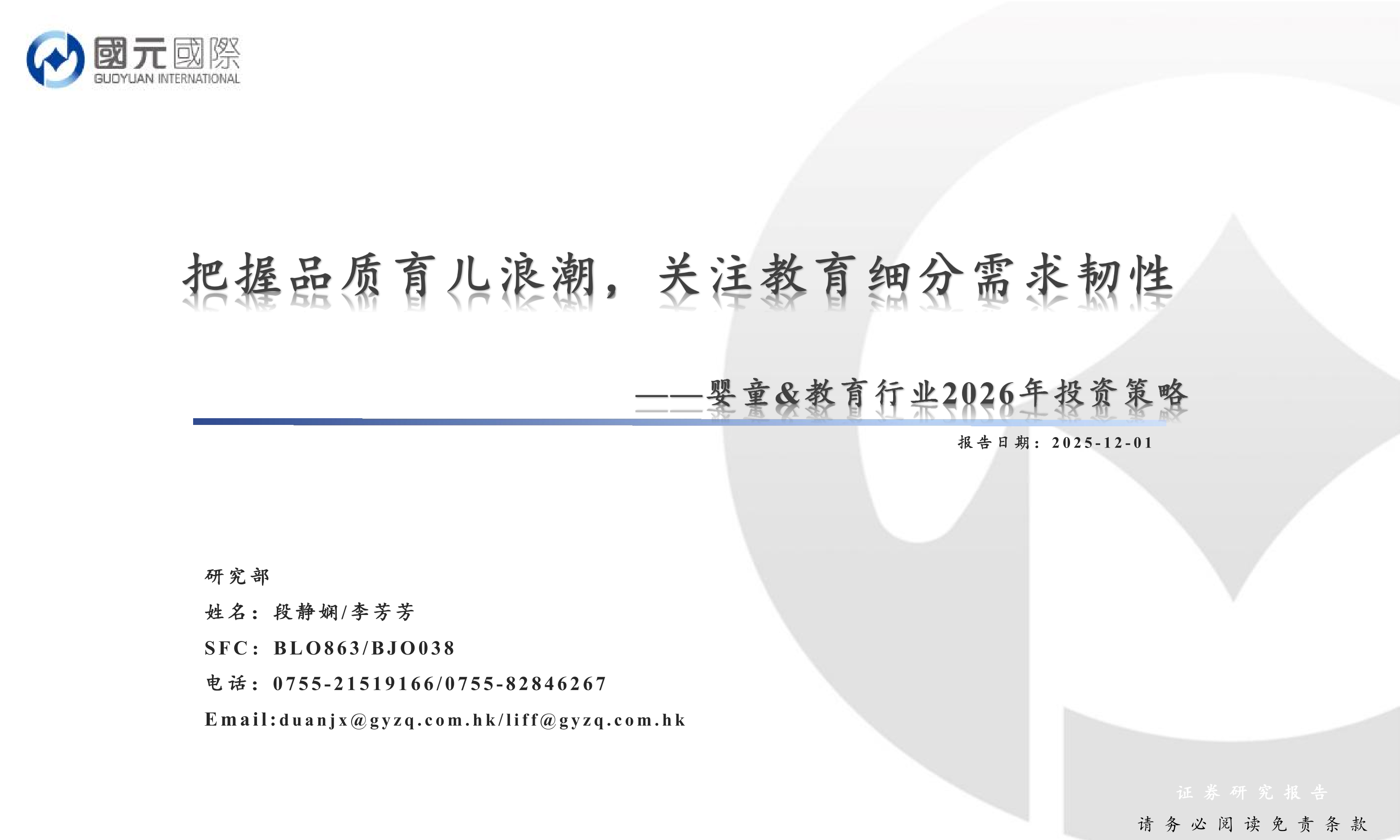 嬰童&教育行業2026年投資策略:把握品質育兒浪潮,關注教育細分需求韌性