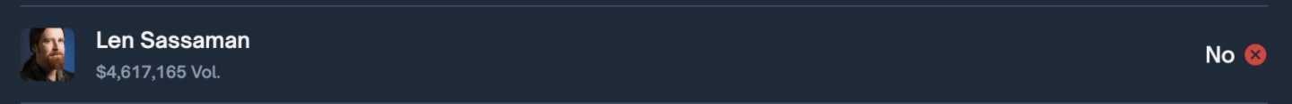 而 Len Sassaman 的勝率(Yes)一路飙升至 68% - 70%。