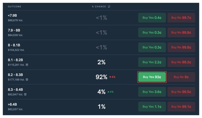 這意味著,對於那些在 0.93 位置大倉買入“8.2–8.3B=Yes”的籌碼來說,他們真正對賭的,不是聖誕老人“送出多少禮物”,而是一個開發者會不會在上綫前最後一次 commit 改掉那串數字。