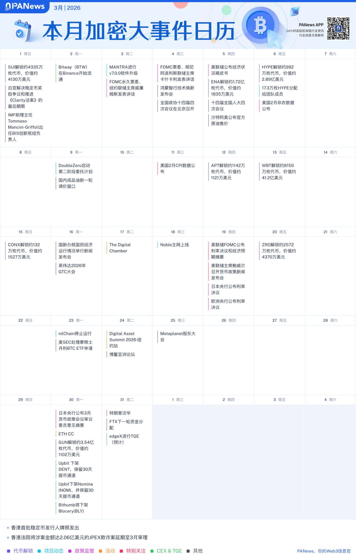 全球焦點事件匯聚,鎖定2026年3月Web3核心脈絡,就看這一張!