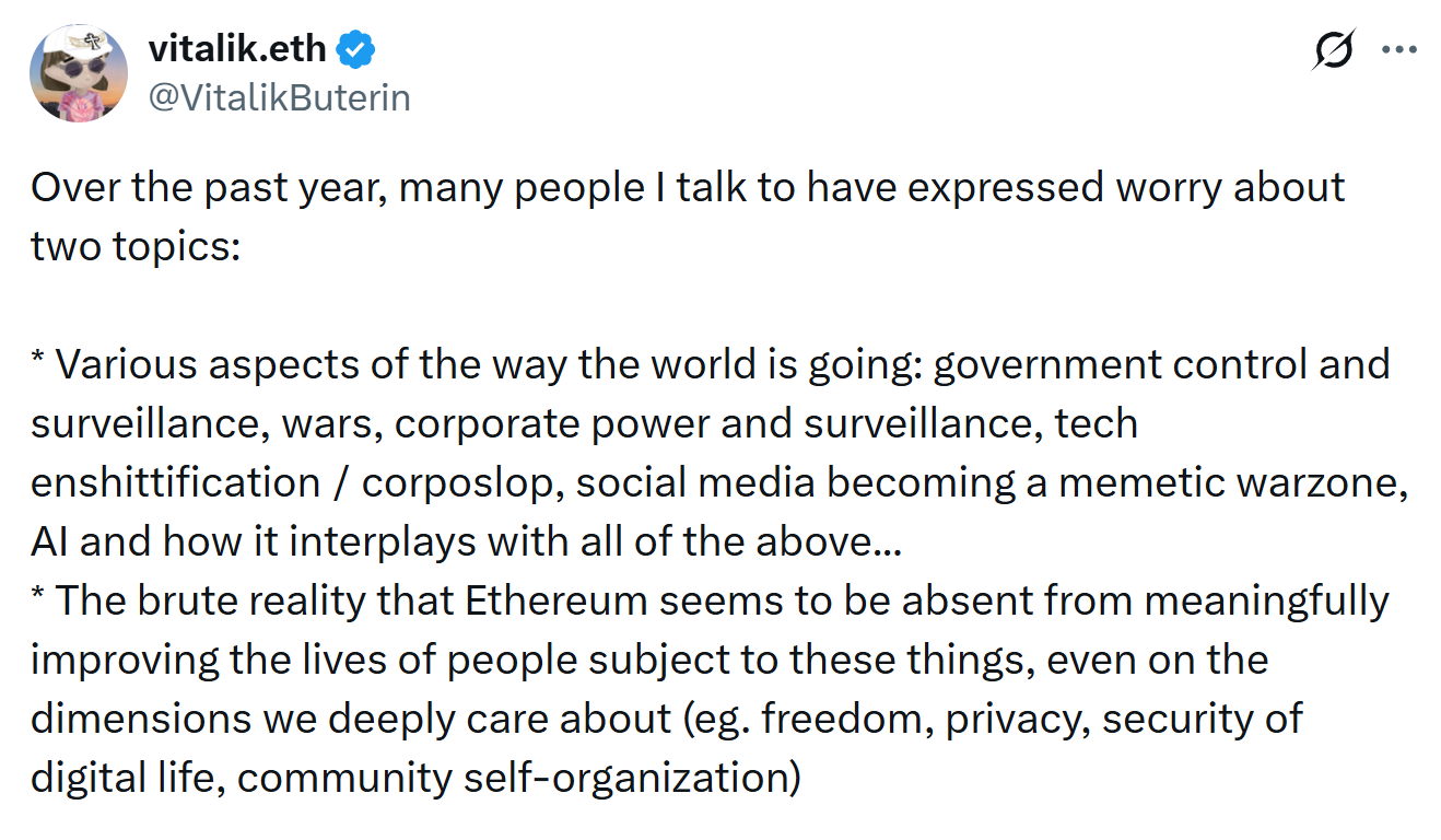 Vitalik 這次的出發點,帶著一種少見的坦率。
