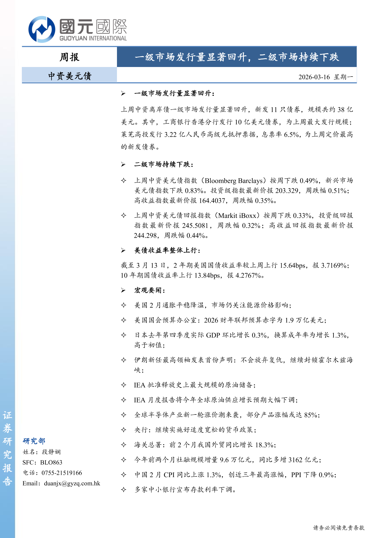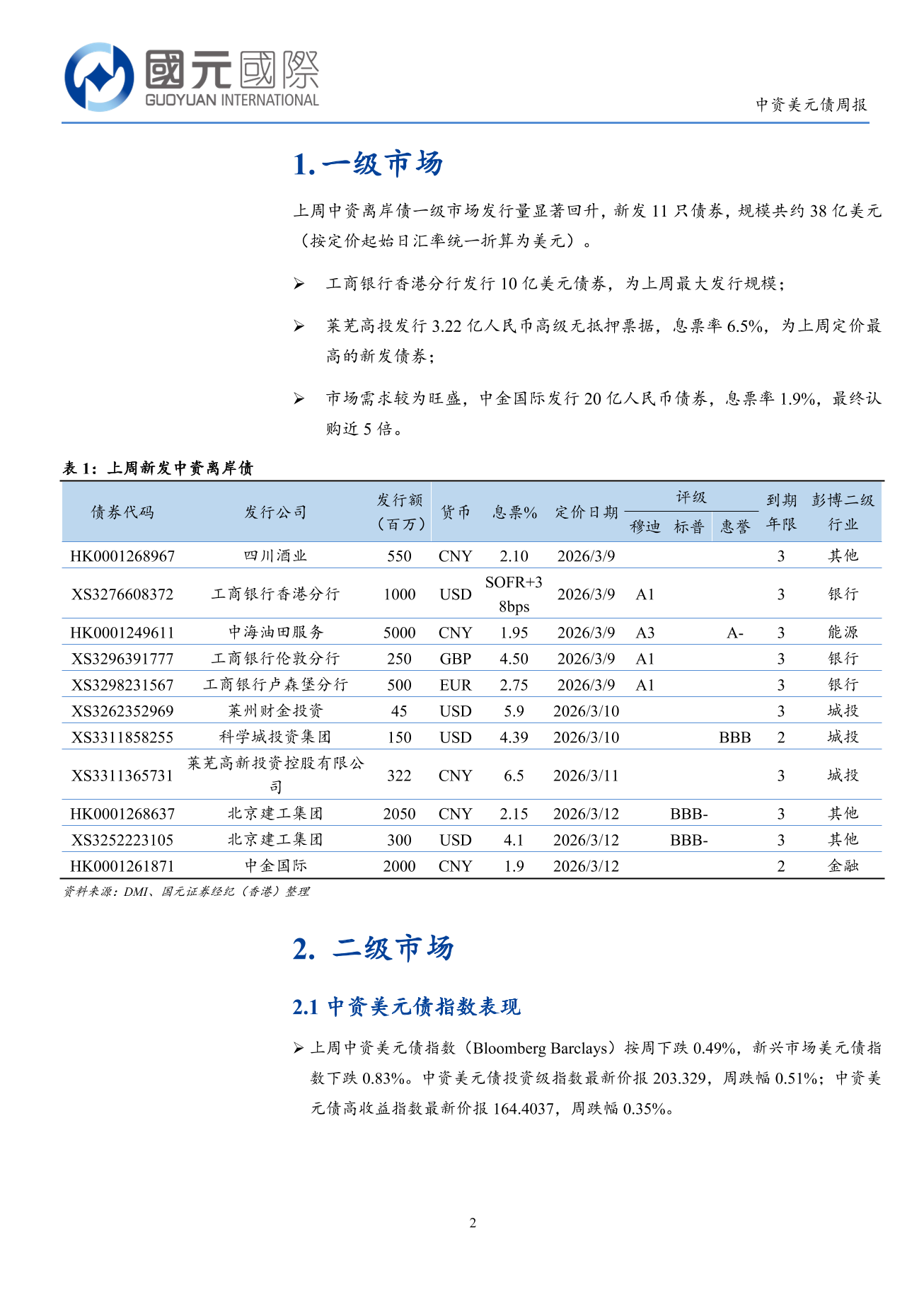 一級市場發行量顯著回升,二級市場持續下跌-中資美元債周報(3.9-3.15)-DJX