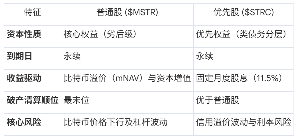 資本結構優先權: 在清算順位上優於普通股($MSTR),為債權導向型投資者提供安全墊。