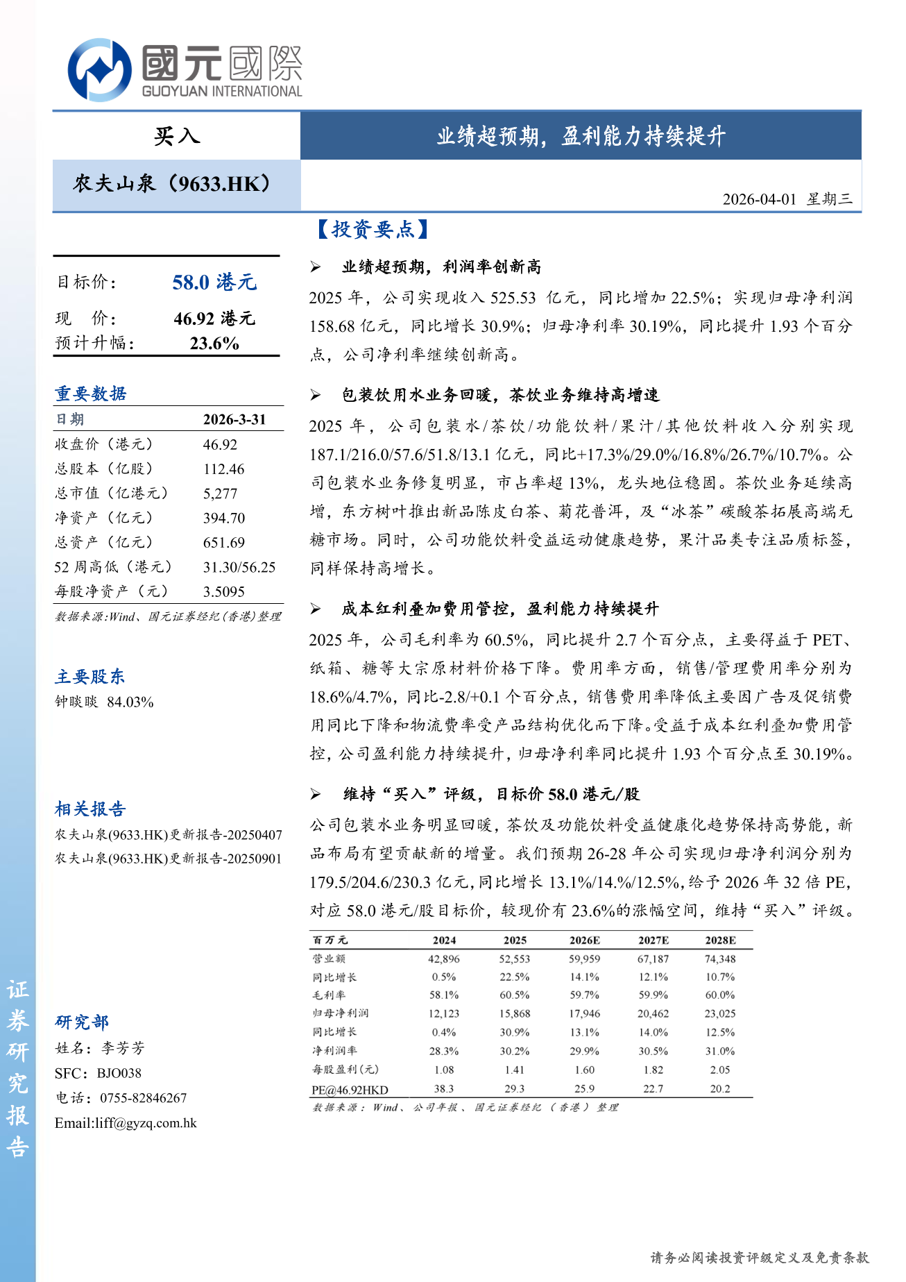 農夫山泉(9633.HK)更新報告:業績超預期,盈利能力持續提升