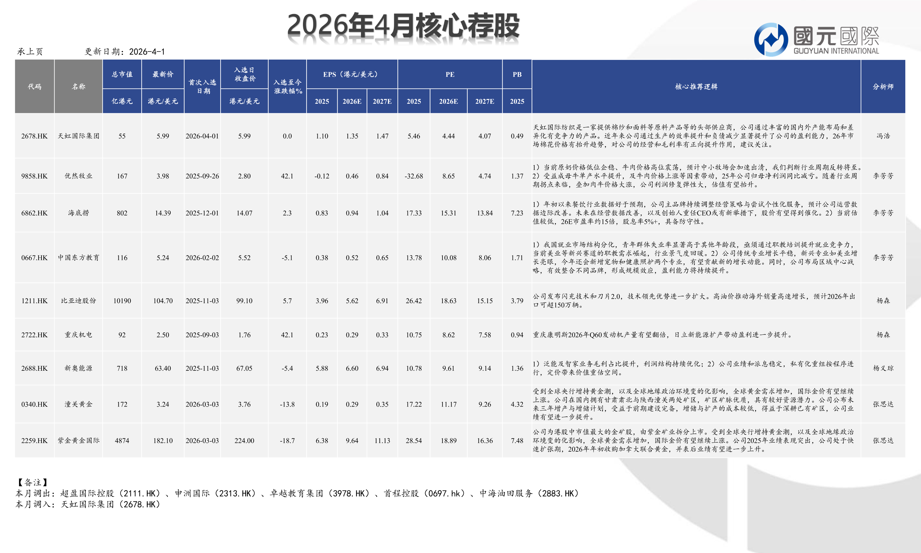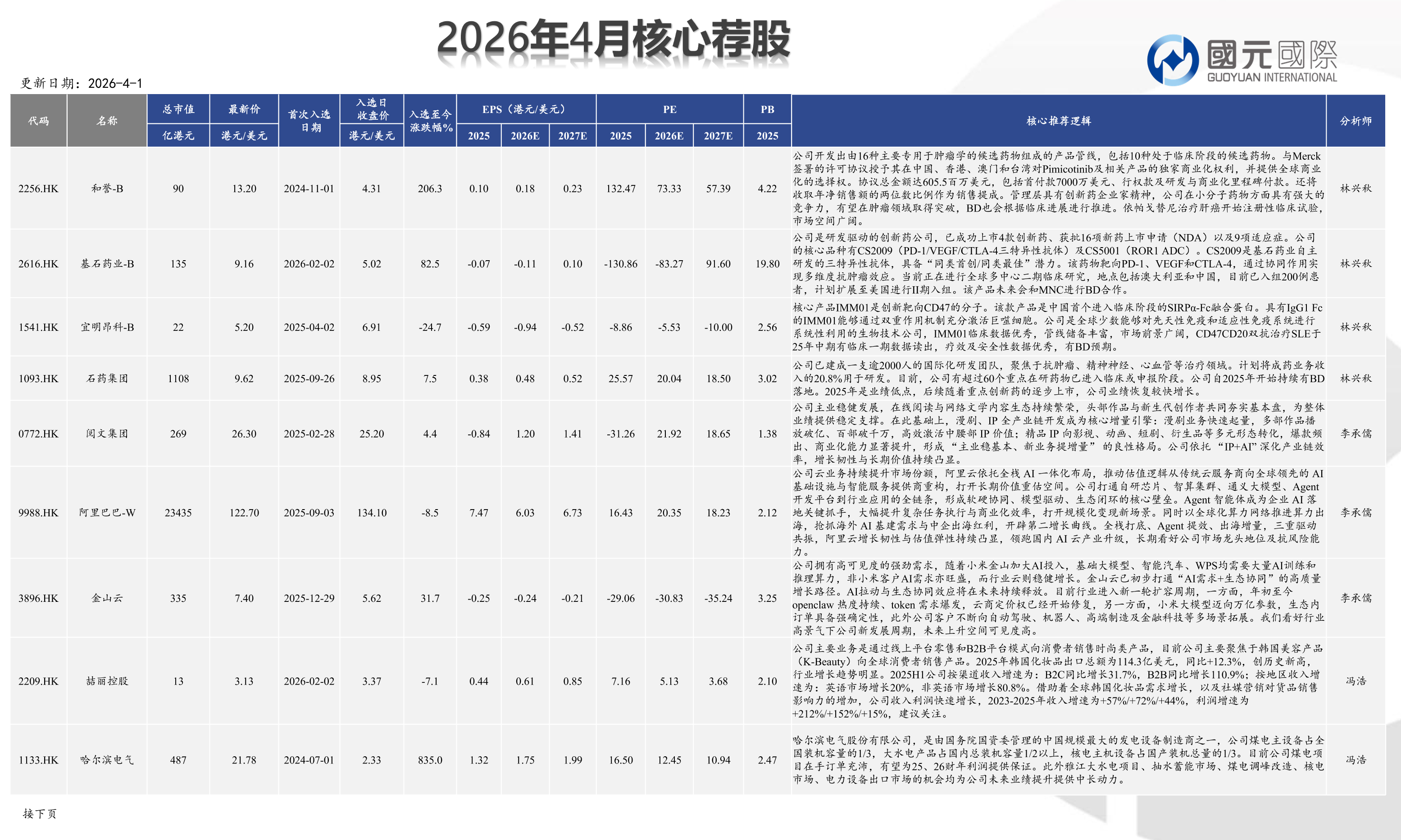 4月核心薦股