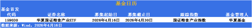 ETF發行市場方面,華夏國證糧食産業ETF今日開募,集中了國内種業龍頭及糧食加工領軍企業