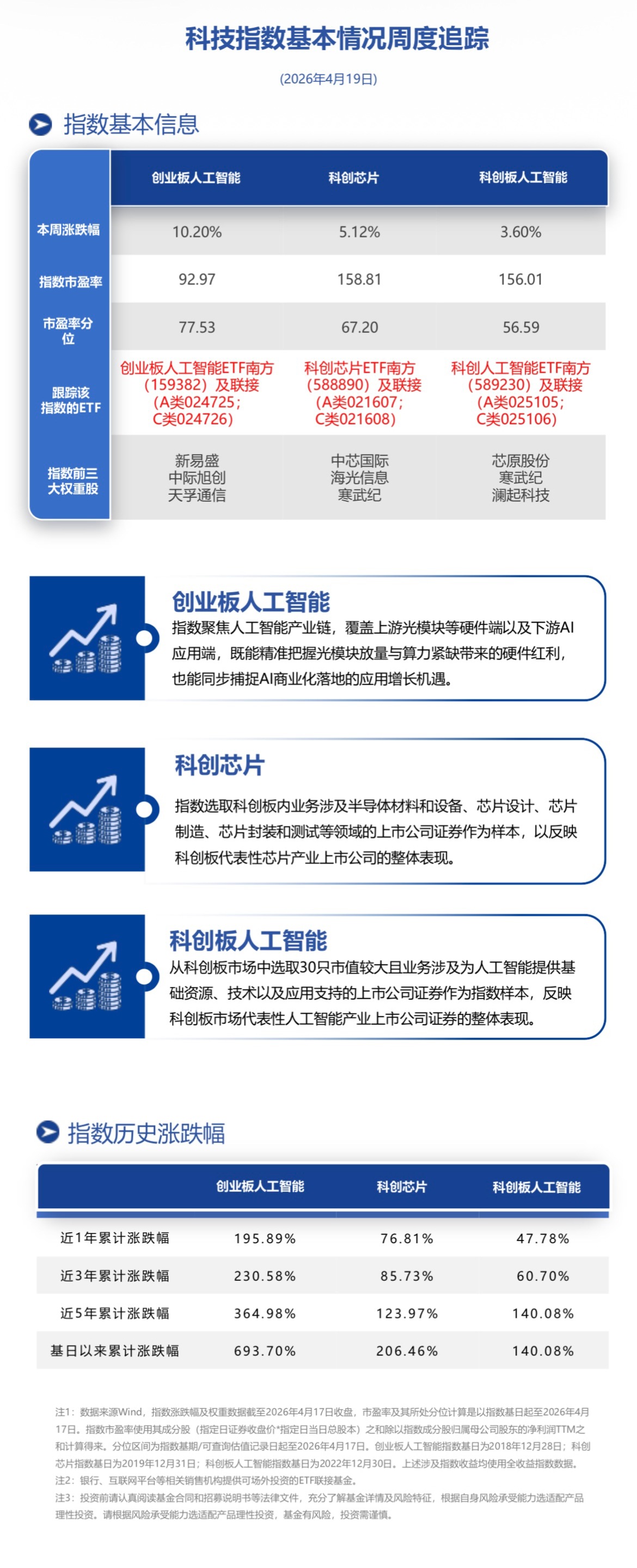 截至周五收盤,創業板人工智能ETF南方(159382) 跟蹤標的創業板人工智能本周漲10.20%;科創芯片ETF南方(588890)跟蹤標的科創芯片本周漲5.12%;科創人工智能ETF南方(589230) 跟蹤標的科創板人工智能本周漲3.60%。
