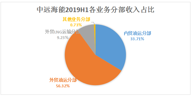 仔细分析以上数据,我们可以看到,如上图所示,外贸油运分部是公司的主要收入来源,占总营收比率为56.32%;内贸油运分部排第二,营收占比为33.71%;外贸LNG运输分部排第三,营收占比为9.23%。
