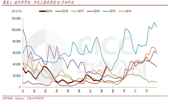 申万交运研究团队在近期的航运行业研报中,重申了油运股的长逻辑,就是需求端美国原油出口将在19-21年有望大量增加带动全球平均运距拉升。供给端上一轮14-16周期高点累计订单交付基本结束,新造船产能边际出清,新船造价上涨抑制远期订单,在建新船占现有运力比例接近历史最低水平,预计20-21年供给增速维持在3%以下水平。而限硫令带来短期催化,2020年1月1日起限硫令生效,受此影响2019年7月-2020年3月平均单月运力退出1%-2%。价格弹性在淡季相对不明显,航运短期供给刚性,2019年Q4旺季有望超预期。