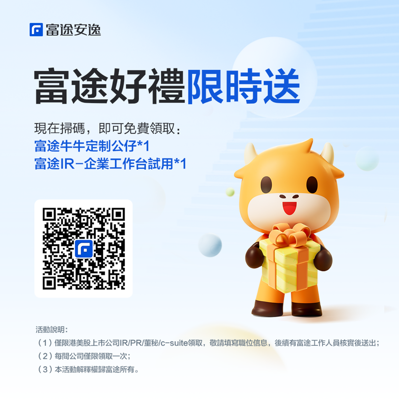正值企业业绩发布期,对富途IR服务感兴趣的朋友欢迎扫描下方二维码领取富途牛牛定制周边及富途IR企业工作台免费试用,让富途助力上市公司财报发布!