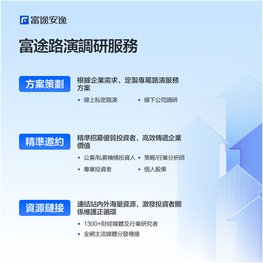 “凭借立体化的金融生态和海量数据支持,富途能够针对不同需求提供定制化IR解决方案,满足多样化的公关传播及投关维系需求。在富途平台上,企业能够充分连接资本市场各方参与者,将企业价值精准传递给全球投资者。”