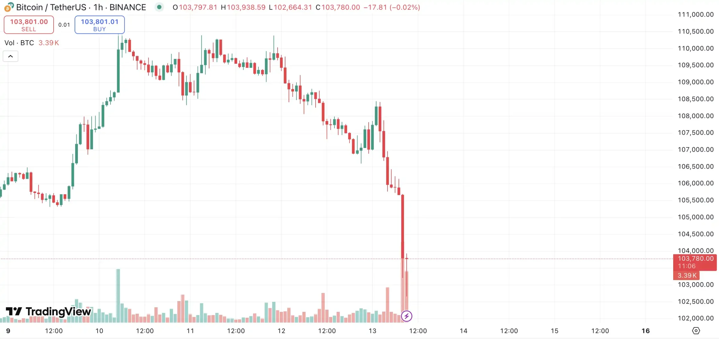 冲突爆发后,比特币短时跌破 102,000 美元,24 小时跌幅达 5%;以太坊短时跌破 2500 美元,24 小时跌幅达 9%。